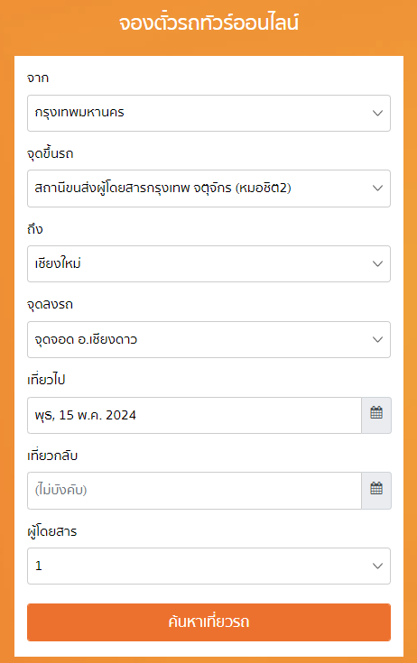 แสดงเที่ยวรถออนไลน์ (ลูกค้าสามารถสอบถามเที่ยวรถเพิ่มเติมอื่น ๆ ได้ที่เคาน์เตอร์จำหน่ายตั๋วหน้าสถานี)