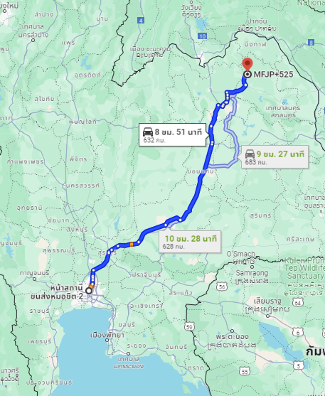 - เดินทางรถส่วนตัว ใช้ระยะเวลาในการเดินทางประมาณ 10 ชั่วโมง