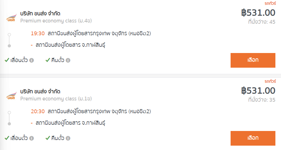 - ปลายทางจังหวัด กาฬสินธุ์ จุดลง สถานีขนส่งผู้โดยสาร จ.กาฬสินธุ์