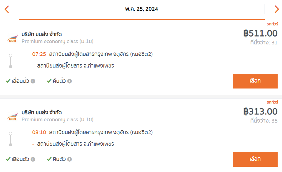 - ต้นทางจังหวัด กรุงเทพมหานคร จุดขึ้น สถานีขนส่งผู้โดยสารกรุงเทพ จตุจักร (หมอชิต2)