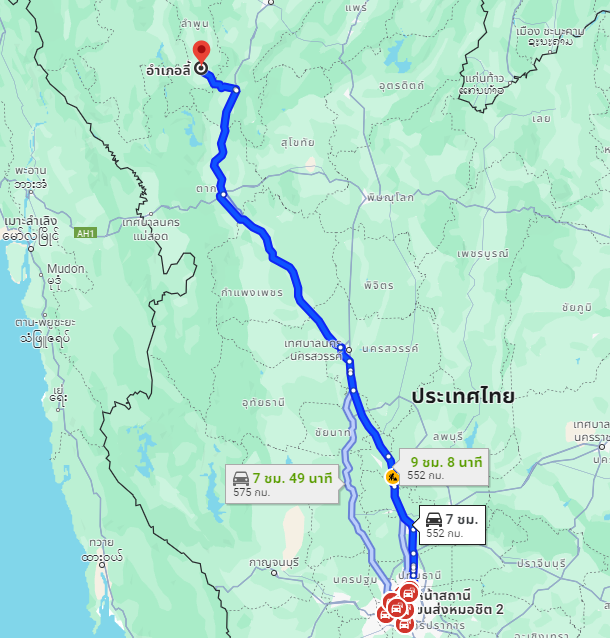 - ปลายทางจังหวัด ลำพูน จุดจอด อ.ลี้