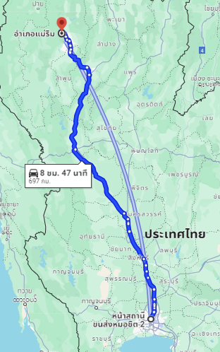 - ปลายทางจังหวัด เชียงใหม่ จุดลง จุดจอด อ.แม่ริม