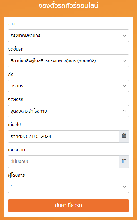 - ต้นทางจังหวัด กรุงเทพมหานคร จุดขึ้น สถานีขนส่งผู้โดยสารกรุงเทพ จตุจักร (หมอชิต2)