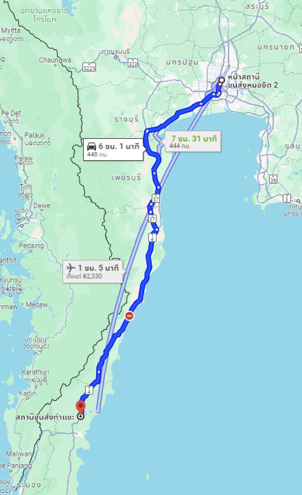 - ปลายทางจังหวัด ชุมพร จุดลง สถานีขนส่งผู้โดยสารท่าแซะ