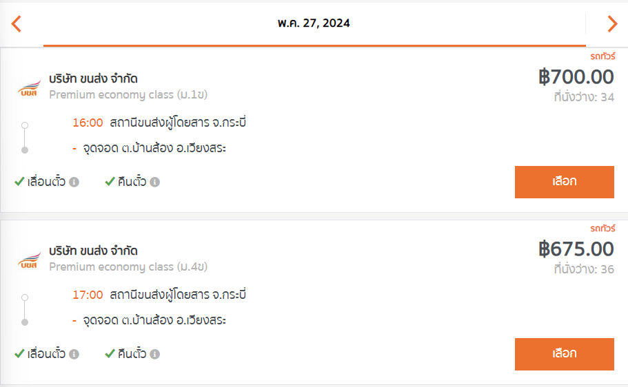 - ต้นทางจังหวัด กระบี่ จุดขึ้น สถานีขนส่งผู้โดยสาร จ.กระบี่