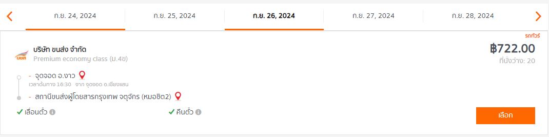 - ปลายทางจังหวัด กรุงเทพมหานคร จุดลง สถานีขนส่งผู้โดยสารกรุงเทพ จตุจักร (หมอชิต2)