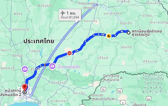 - ต้นทางจังหวัด ร้อยเอ็ด จุดขึ้น สถานีขนส่งผู้โดยสาร อ.สุวรรณภูมิ